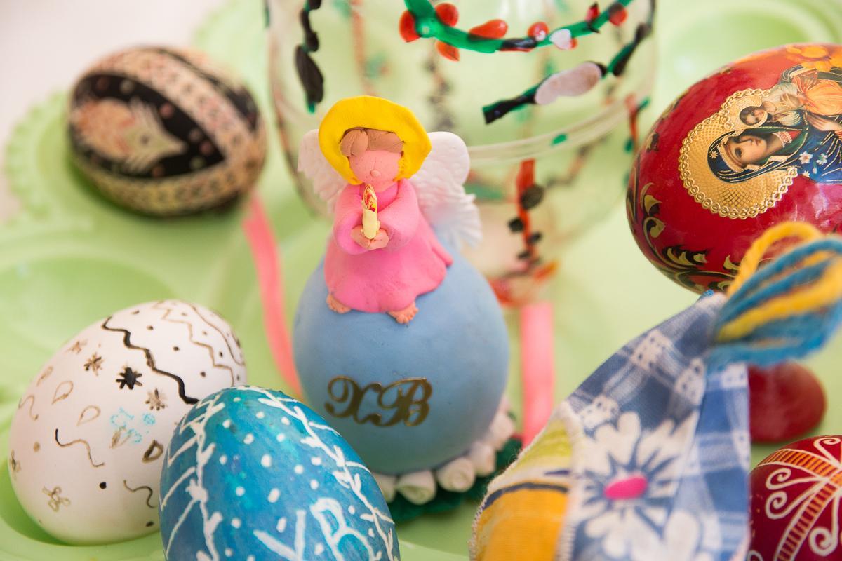 На снимке представлены пасхальные яйца, изготовленные в ходе занятий.