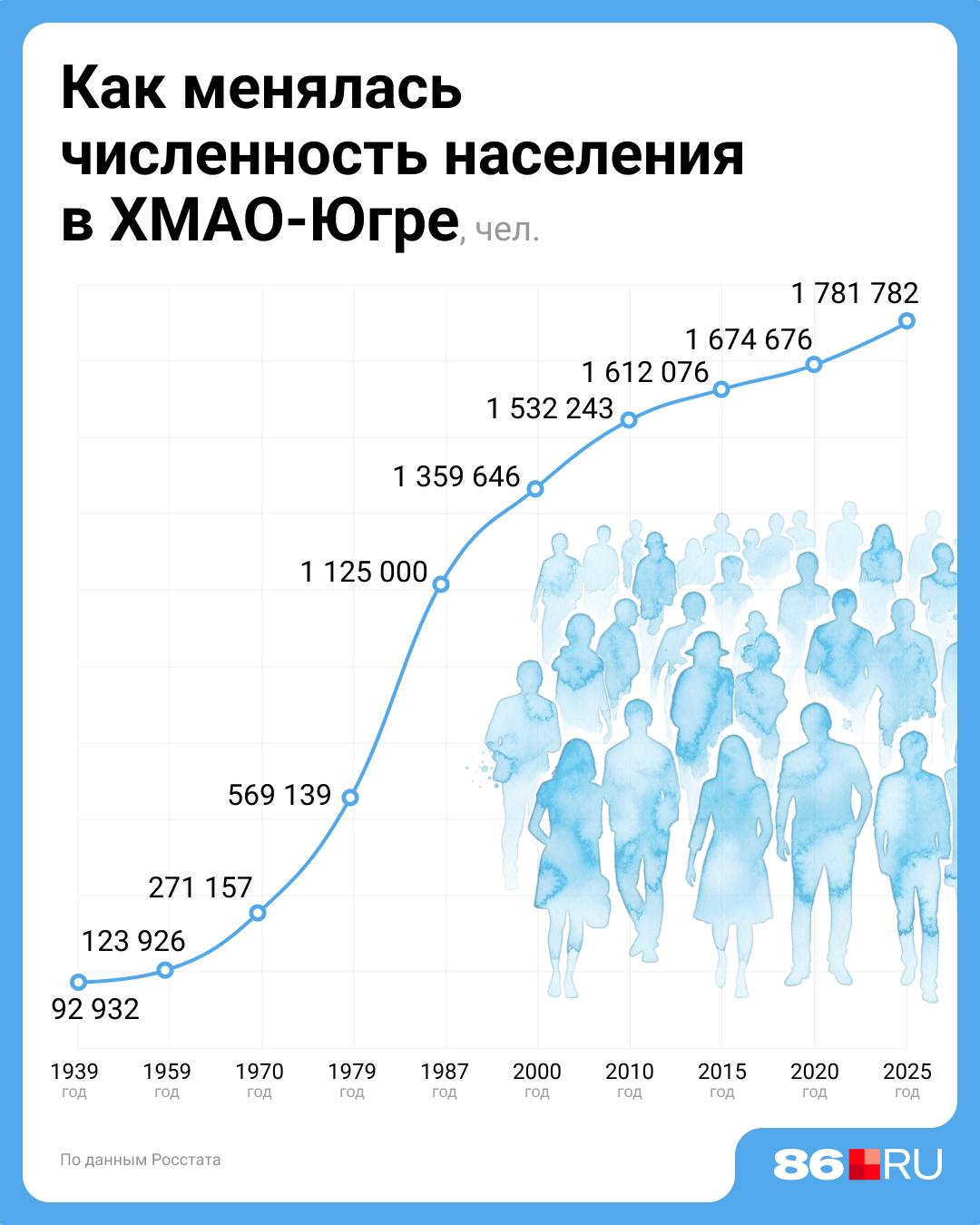 По состоянию на 2025 год численность населения Югры составляет 1 миллион 782 тысячи человек.
