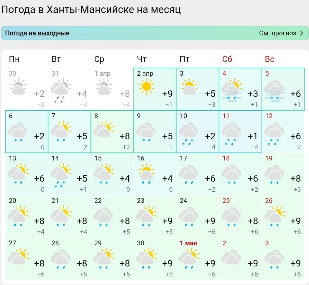 Ожидаемая погода в Ханты-Мансийске в апреле.